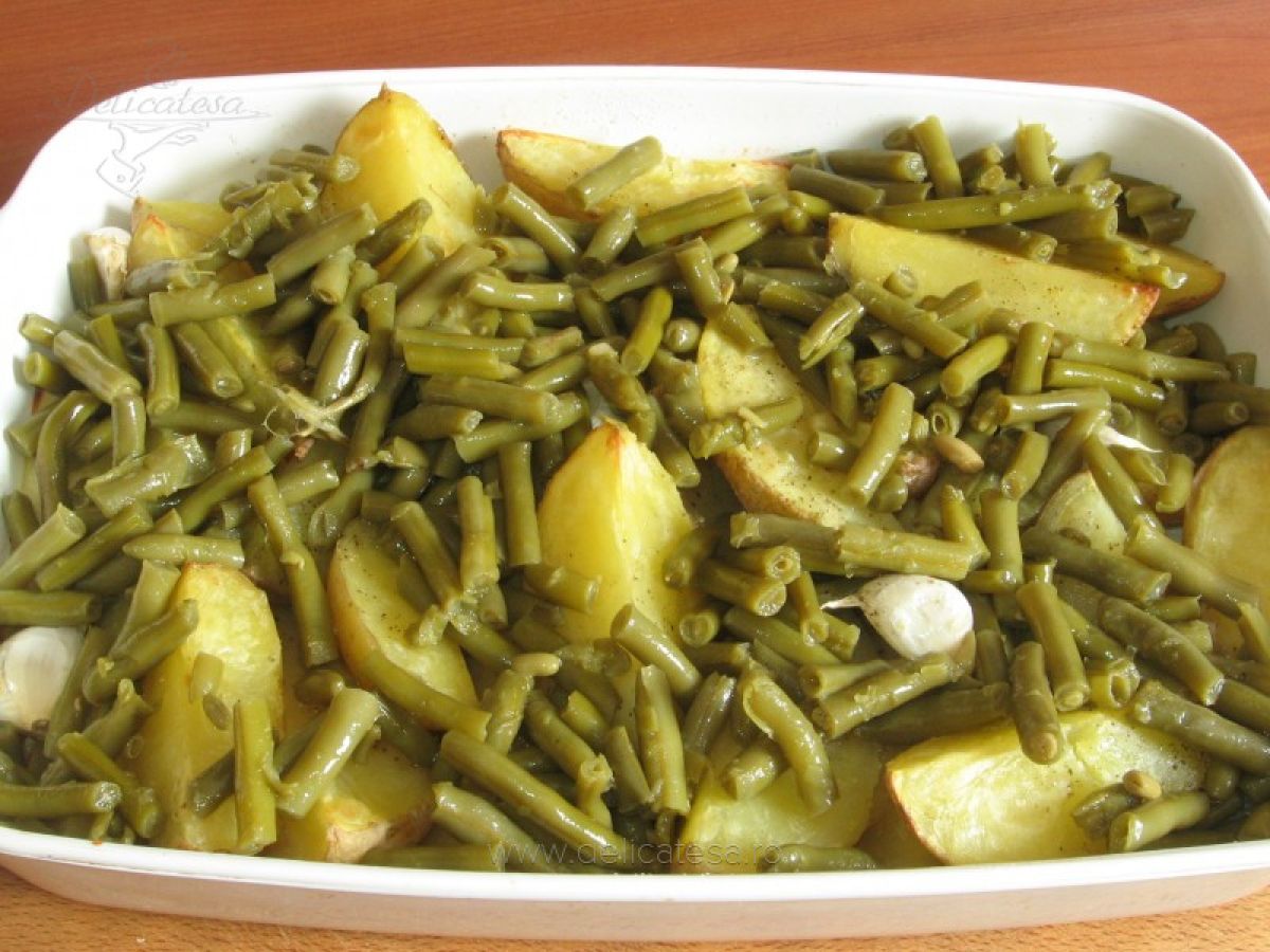Fasole verde inabusita cu mamaliguta. Fasolea verde este una dintre cele mai sănătoase legume pentru organism. Pentru aceasta reteta de mancare de fasole verde, la cuptor, poti folosi atat fasole verde proaspata, cat si fasole verde congelata. Se pun fasolea şi cartofii bine scurşi şi se amestecă tigaia prin scuturare. Lasă fasolea maxim 10 minute.