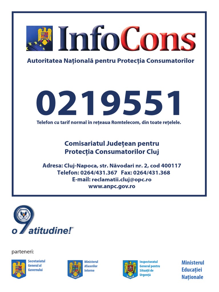 Infocons este operator de date cu caracter personal. Raspunde cineva de actualizarea acestei pagini? Protectia consumatorului 0219551 cluj model placuta afisare agenti economici.