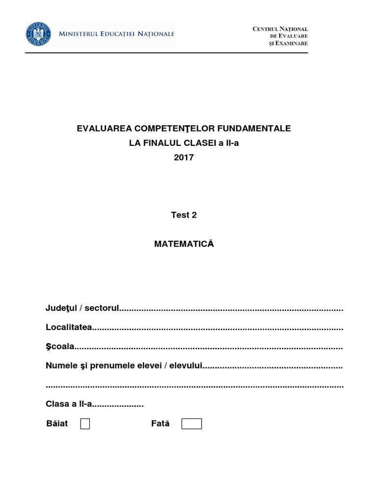 Evaluare Nationala Clasa 6 Matematica Si Stiinte 2017